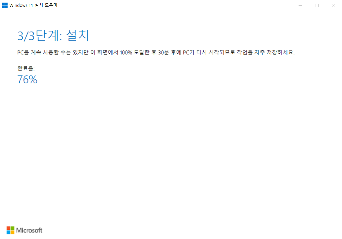 윈도우11 설치 환경으로 충족되었다는 메시지를 확인 한 후에 다시 윈도우 11 업그레이드 파일을 실행하면 된다.