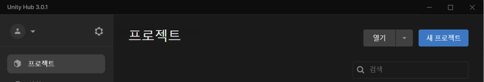유니티 2020.3.9 설치 후 좌측 메뉴에 [ 프로젝트 ] 클릭 후 [ 새 프로젝트 ] 클릭 한다.