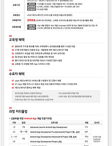 KT14 [서울] 기업 맞춤형 모바일 앱 개발 전문가과정 무료교육 - 교육생모집안내 앱 개발 A to Z 기업 맞춤형 모바일 앱 개발 전문가과정 교육생 모집 [교육기간] 10주 (프로젝트 병행 수행) [교육일정] - 1차 : 5월6일 ~ 7월19일 - 2차 : 8월5일 ~ 10월24일 [교육장소] KT 에코노베이션 스마트스쿨 (서울특별시 종로구 소재) [제공혜택] - App 완성도 향상 및 커뮤니티 강화를 위한 프로젝트 멘토링 - 취업역량 강화 프로그램 및 산학 네트워킹 제공 - 우수 중소기업 취업연계 - 우수 수료자 해외연수 프로그램 참여 기회 부여 - 수료 시 수료증 발급 [모집대상] 접수마감일 기준 (전문)학사 이상의 졸업예정자 또는 졸업 후 3년 이내 미취업자 (2010년 이후 졸업자로 접수 마감일 기준 미취업자) [모집인원] 1차시 40명 [신청기간] 2013.4.8 (월) ~.. 2013. 4. 25. [부산] 안드로이드 앱 개발 무료 교육 접수 시작 (~10/3까지) 부산 안드로이드 앱 개발 교육이 확정 되었습니다. 교육 요강은 다음과 같습니다. 교육명 : [부산] ’부산시-KT’ 상용화를 위한 Android App 개발과정 구분 : 개발, 전문가 과정 기간 : 2012-10-09 부터 2012-12-01 까지 (24일, 112시간) 시간 : 신청페이지 참조 http://bit.ly/busanAPP 장소 : 부산 해운대구 우2동 1475번지 센텀벤처타운 위치보기 대상 : ① 안드로이드 앱 개발 기초 경험자 ② 안드로이드 앱 개발언어 숙련자 ③ 앱 개발에 관심을 갖고 있는자(JAVA경험자 우대) JAVA 언어 이해도가 전무할 경우, 수업참여가 원활하지 못할 수 있습니다. 정원(명) : 30 마감일 : 2012-10-03 수강자 선정/발표 : 개강 3일전까지 전화, 이메.. 2012. 8. 21. [부산] 안드로이드 앱개발 무료 교육 모집 안내 (사전조사) 안녕하세요! 안드로이드 스터디 운영자 이경용 입니다. 지금까지 앱 교육을 많이 들어 보셨겠지만 제대로 앱하나 못 만들어 보셨다면 이번에 좋은 기회가 될것 같습니다. KT에코노베이션과 안드로이드 스터디 그리고 부산모바일앱개발센터가 야심차게 준비하고 있는 "사용화를 위한 Android App 개발전문 과정"을 진행하고자 합니다. 이번 교육 과정은 차별화 되는 것은 다음과 같습니다. 1. 30명 모집 3명씩 1조로 아이디어 회의를 거쳐 프로젝트 참여 2. 기획 및 프로젝트에 KT에서 전적으로 멘토링 지원 3. 앱 디자인 지원 4. 개발 완성 되도록 지속적인 멘토링 5. 완성된 앱중 선정해서 상금 지급 예정 6. KT의 마케팅 지원 등의 차별화 된 교육 입니다. 참, 교육 중간에 회식도 해준다네요 ~ 짱! ^^.. 2012. 8. 10. [olleh 에코노베이션 스마트스쿨] 상용화를 위한 App 개발 전문가과정 4기 모집시작 (~7.16까지) Android App 개발 전문가과정 4기 : 신청하기 Hybrid App 개발 전문가과정 4기 : 신청하기 2012. 6. 26. 이전 1 2 3 4 다음